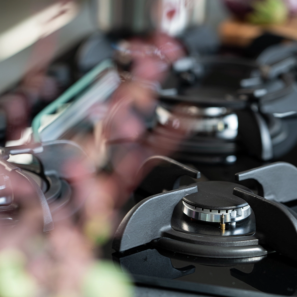 مهمترین تفاوت این مدل با IG503 در گوشههای شیشه است در این محصول ابزار خورده است. کاربرد این مدل برای دکورهایی است که مثلا در آن در طراحی کابینت آشپزخانه از سطوح صاف، ابزار خورده و برش خورده استفاده شده است. در این حالت استفاده از این اجاق به کابینت جلوه مضاعفی میدهد و هارمونی خوبی میان کابینت و اجاق در چیدمان و دکور آشپزخانه ایجاد میشود.
